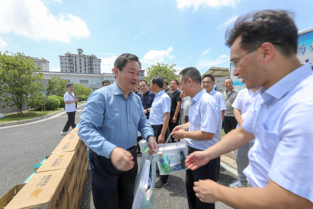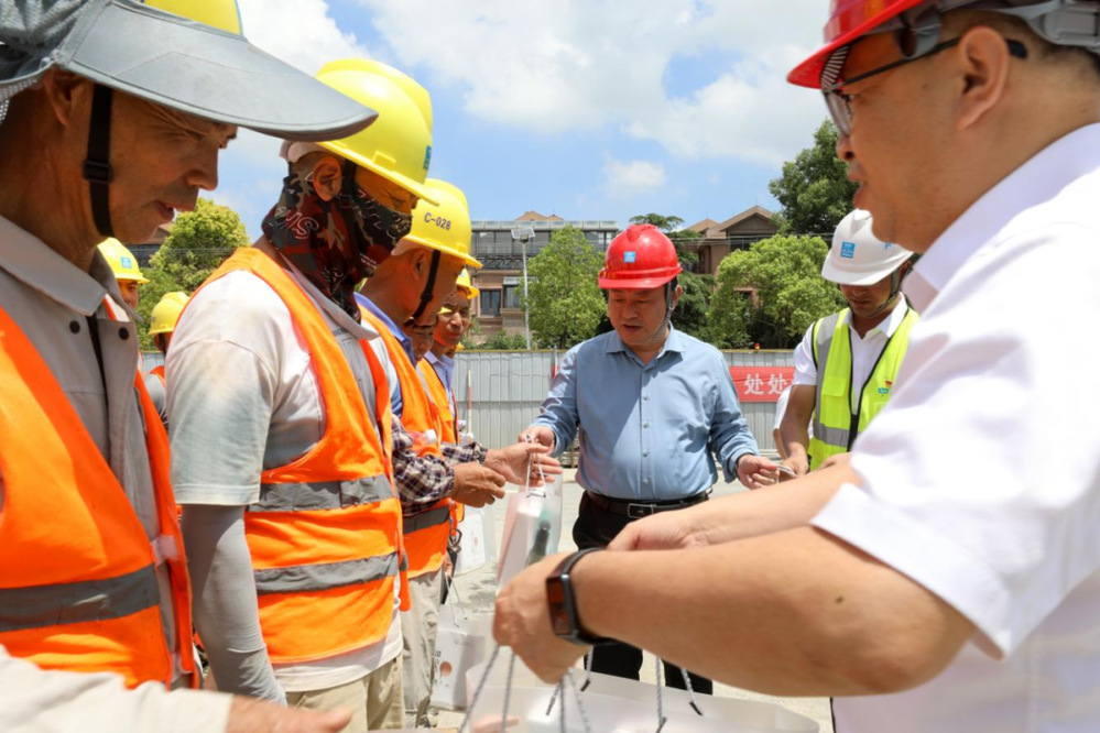 “高溫天氣,工作辛苦,大家要好好照顧自己,做好個(gè)人防護(hù)。” 炎炎夏日送清涼,滴滴關(guān)愛暖人心。每到一處,城控集團(tuán)董事長張思忠都詳細(xì)詢問職工們高溫天氣下的工作和生活狀況,叮囑大家,勞逸結(jié)合,做好防護(hù),確保安全生產(chǎn)和身體健康。