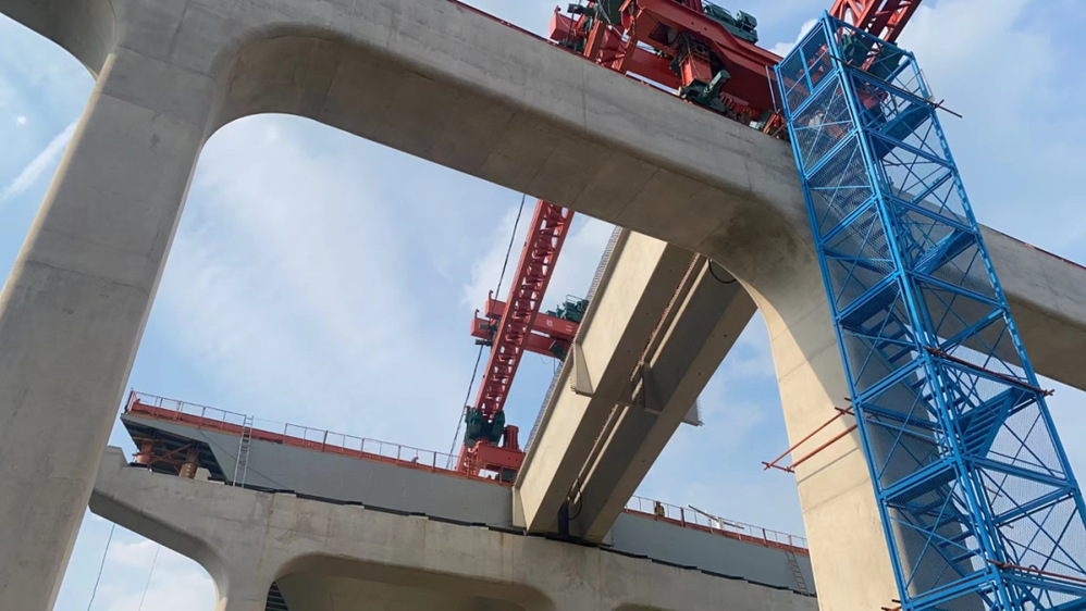 8月10日上午,運(yùn)河路北延鐵路鄰跨順利完成架橋機(jī)過軌、首片箱梁架設(shè)施工任務(wù),打響了跨鐵路箱梁架設(shè)施工第一槍。