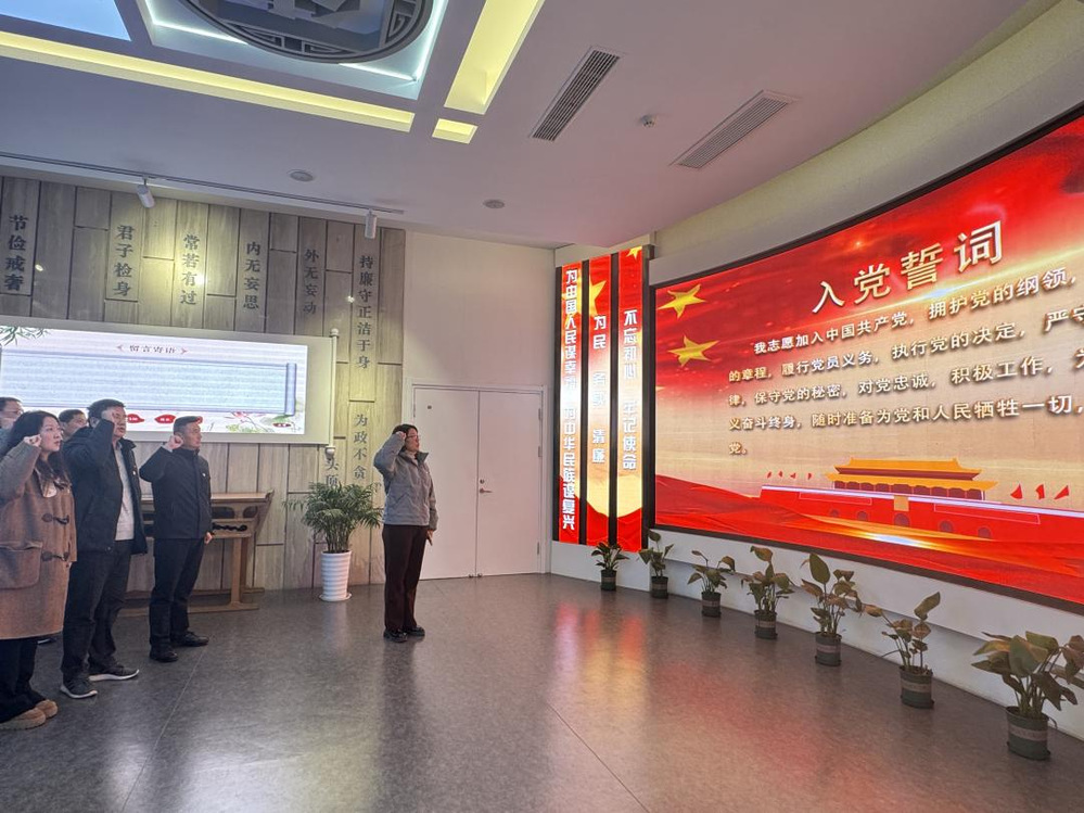 在工作人員的講解下,一件件觸目驚心的反腐案例,一聲聲痛心疾首的懊惱懺悔,讓在場的每一位黨員干部的內(nèi)心受到了強烈的震撼。參觀結(jié)束后,黨員們在館內(nèi)莊嚴重溫入黨誓詞,再憶入黨初心。