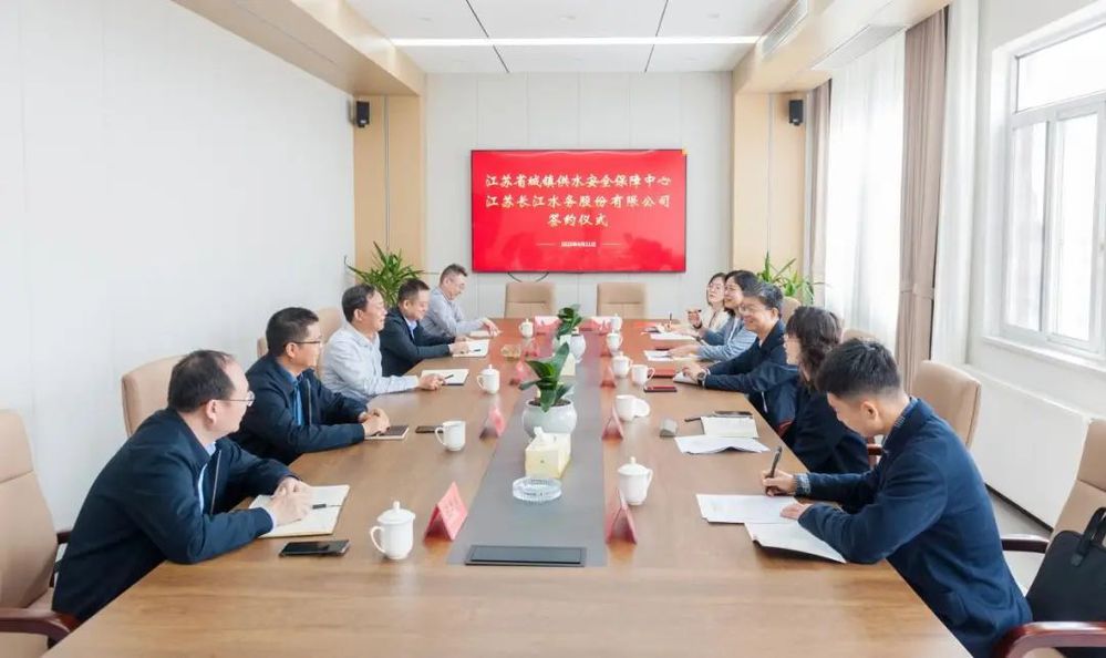 為深入貫徹習(xí)近平總書記以人民為中心的發(fā)展理念,全面落實(shí)黨中央、國(guó)務(wù)院關(guān)于飲用水安全的重要決策部署,以及省委省政府關(guān)于城鎮(zhèn)供水安全保障的總體要求。4月11日上午,長(zhǎng)江水務(wù)公司與江蘇省城鎮(zhèn)供水安全保障中心正式簽署戰(zhàn)略合作協(xié)議。江蘇省城鎮(zhèn)供水安全保障中心主任徐建、副主任郭楊、供節(jié)水部部長(zhǎng)李蘭娟,長(zhǎng)江水務(wù)股份有限公司主要負(fù)責(zé)人、分管負(fù)責(zé)人及職能科室相關(guān)人員出席簽約儀式。