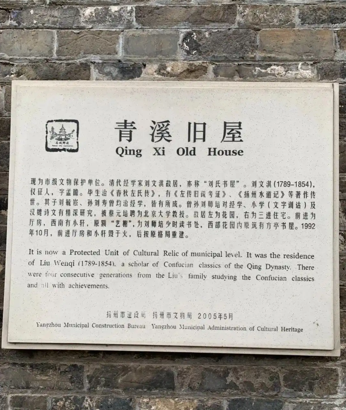 四、青溪舊屋:文化與歷史的交匯點(diǎn)青溪舊屋,作為劉文淇、劉師培的故居,不僅承載著家族的記憶與榮耀,更見證了揚(yáng)州學(xué)術(shù)文化的傳承與發(fā)展。在這里,一代又一代的學(xué)者,以筆為劍,以墨為鋒,書寫著屬于自己的輝煌篇章。如今,這座古老的院落雖已歷經(jīng)滄桑,但它所蘊(yùn)含的文化底蘊(yùn)與歷史價(jià)值,卻歷久彌新,熠熠生輝。這里的一磚一瓦、一草一木,都承載著厚重的文化與歷史。它們靜靜地訴說著過往的故事,也期待著未來的傳承與發(fā)展。