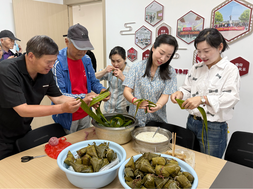 活動(dòng)現(xiàn)場(chǎng),志愿者們?cè)缭绲貙⑻崆芭莺玫呐疵?、紅棗、粽葉等材料整齊擺放在桌上。大家圍在一起,各自拿出看家本領(lǐng),捋粽葉、做漏斗狀、填糯米、壓緊實(shí)、封口、扎捆,巧手翻飛,不一會(huì)兒,形態(tài)各異的粽子便擺滿了桌子。活動(dòng)現(xiàn)場(chǎng)歡聲笑語不斷,粽葉的清香與大家的熱情交織在一起,濃濃的節(jié)日氛圍撲面而來。志愿者們將粽子遞到老人們手中,并與他們親切交談,詳細(xì)詢問他們的身體狀況和生活情況,叮囑老人們要注意天氣變化,保重身體。老人們紛紛表示:“感謝長江水務(wù)和社區(qū)對(duì)我們的關(guān)心,我們能在端午節(jié)吃到這么香甜的粽子,心里特別溫暖!”