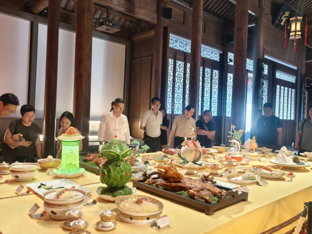 莫清一行首先了解了街區(qū)的地域特點(diǎn)、業(yè)態(tài)布局以及街區(qū)提改升級的理念等基本情況;隨后,參觀了淮揚(yáng)菜博物館、唐朝詭事錄VR劇場;還在街區(qū)的美食市集體驗了揚(yáng)州獅子頭、揚(yáng)州炒飯等經(jīng)典美食的制作。