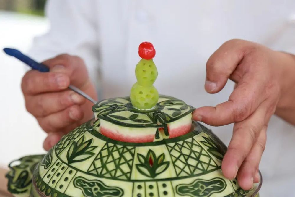 活動現(xiàn)場精心設置25個非遺美食展位,多位非遺傳承大師現(xiàn)場展示精湛廚藝。細如發(fā)絲的文思豆腐、精雕細琢的食雕作品、鮮而不膩的獅子頭、粒粒分明的揚州炒飯、皮薄餡多的湯包,引得賓客紛紛駐足品鑒。