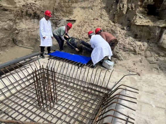 此次應(yīng)急演練模擬施工現(xiàn)場塔吊基坑邊坡因連續(xù)降雨出現(xiàn)局部坍塌,1名工人被困,周邊土體存在繼續(xù)滑移的風(fēng)險等情形。演練活動涉及應(yīng)急隊(duì)伍集結(jié)、受傷人員醫(yī)療救護(hù)、工程應(yīng)急處置搶險等多個環(huán)節(jié)?,F(xiàn)場總指揮收到救援消息后,立即啟動應(yīng)急救援預(yù)案。各小組響應(yīng)迅速、職責(zé)明確,警戒組及時封鎖現(xiàn)場;救援組進(jìn)行隱患排查,制定支護(hù)方案并對基坑周邊進(jìn)行加固,防止邊坡發(fā)生二次坍塌;醫(yī)療救護(hù)組開展救援,對傷者進(jìn)行包扎檢查,并將傷者送至路邊等待救護(hù)車到場送至醫(yī)院。在各小組的密切配合下,在全體演練人員的共同努力下,演練取得圓滿成功。
