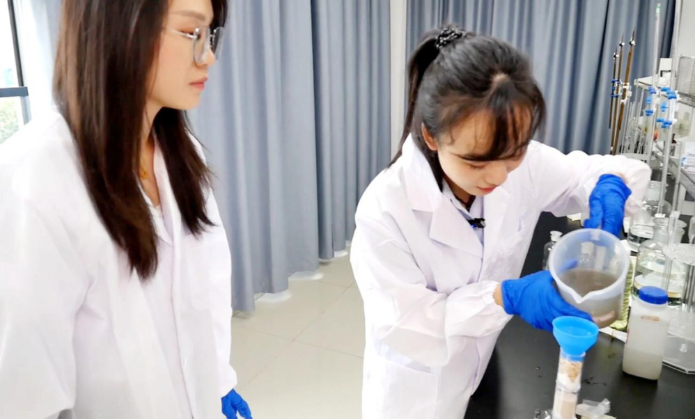 直播伊始,鏡頭聚焦實(shí)驗(yàn)室,講解員手持燒杯、滴管等實(shí)驗(yàn)器具,化身“水質(zhì)魔法師”,她將模擬污水緩緩倒入燒杯,模擬污水處理流程,邊講解邊依次加入絮凝劑、沉淀劑,輕輕攪拌間,使原本渾濁的污水凈化為清澈的水源,這場(chǎng)簡(jiǎn)約小實(shí)驗(yàn)瞬間點(diǎn)燃了觀眾的熱情。