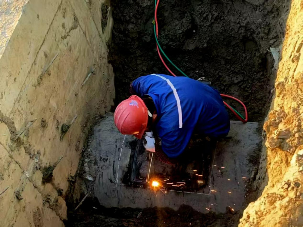 碰接施工正式開始前,潔源公司再次開展現(xiàn)場(chǎng)技術(shù)交底,除重申作業(yè)規(guī)范與安全準(zhǔn)則外,結(jié)合現(xiàn)場(chǎng)實(shí)際,對(duì)夜間照明布局、施工設(shè)備就位精度、周邊交通動(dòng)線規(guī)劃等細(xì)節(jié)進(jìn)行了最終確認(rèn)與動(dòng)態(tài)微調(diào),幫助各關(guān)鍵崗位人員對(duì)作業(yè)任務(wù)形成清晰統(tǒng)一共識(shí)。作業(yè)開始后,各施工小組嚴(yán)格按照既定方案推進(jìn)工作,為搶抓夜間進(jìn)水量相對(duì)較低的窗口期,同步開啟5個(gè)施工作業(yè)點(diǎn),各點(diǎn)位分工明確、銜接高效,施工過(guò)程井然有序,最終在19小時(shí)內(nèi)高效完成了管道碰接任務(wù)。