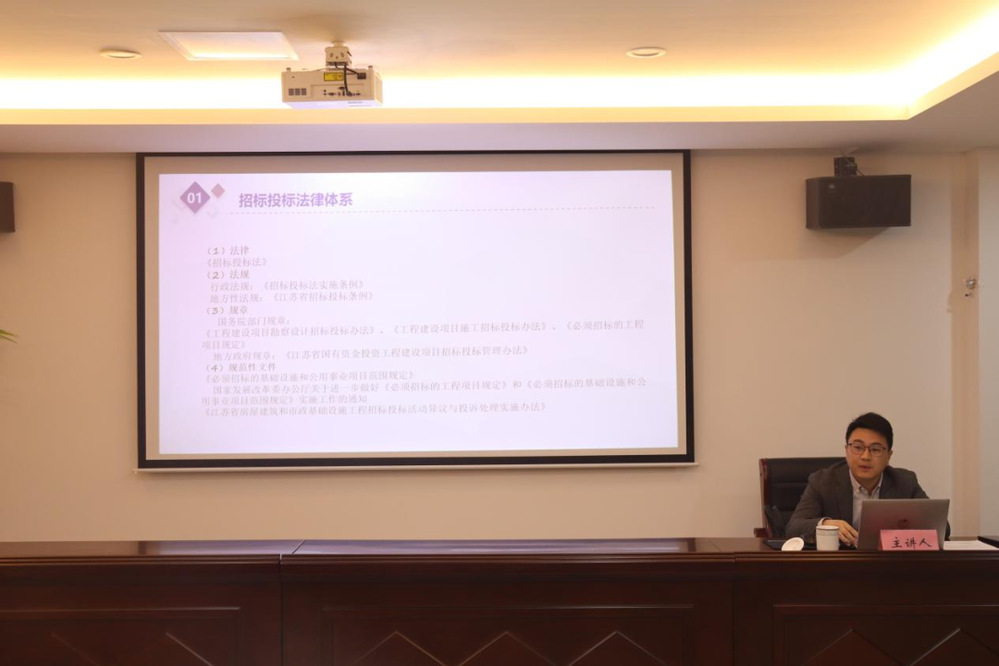 培訓(xùn)中,馬遠圍繞《中華人民共和國招標投標法》《江蘇省招標投標條例》等相關(guān)法律要求,通過“政策解讀+案例分析+互動答疑”的形式,闡釋了招投標管理的法律邊界與操作規(guī)范,剖析了招投標管理的典型法律風(fēng)險,并針對招投標過程中易出現(xiàn)的程序違規(guī)、串標風(fēng)險、合同簽訂爭議等實際問題,提出了切實可行的防范建議。